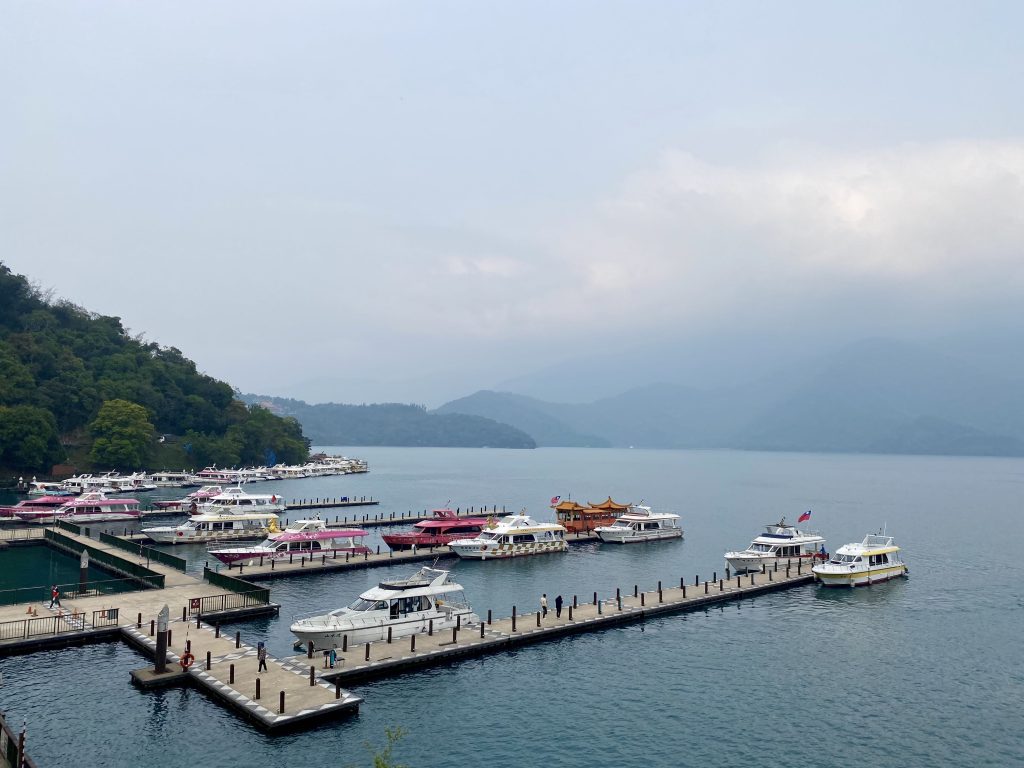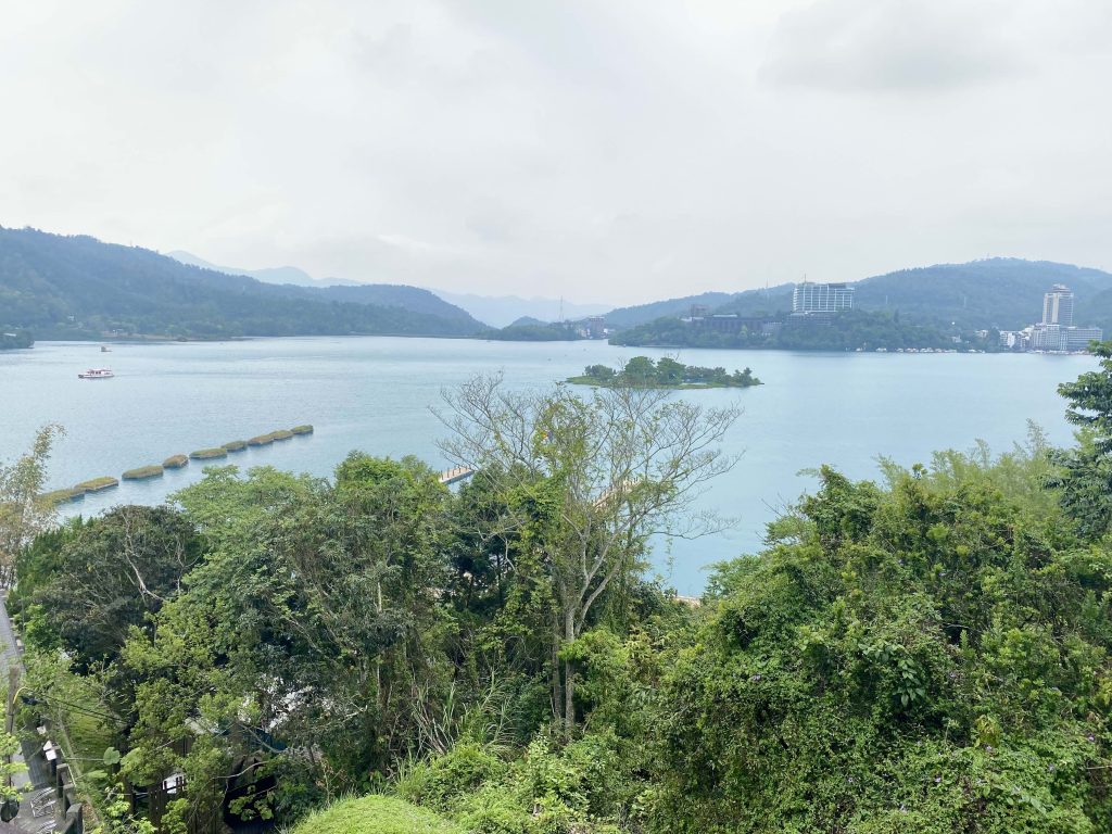 去日月潭的当天是阴天,算是一种小小的遗憾,但也别有一番风味,有一种烟雨朦胧的国画感。按常规的理解,日月潭就是一个在山里的大湖泊。郁郁葱葱的山体围合着日月潭,湖边散落着多处斑斓的建筑,湖中各处航行着游船,一副悠哉游哉的画卷。